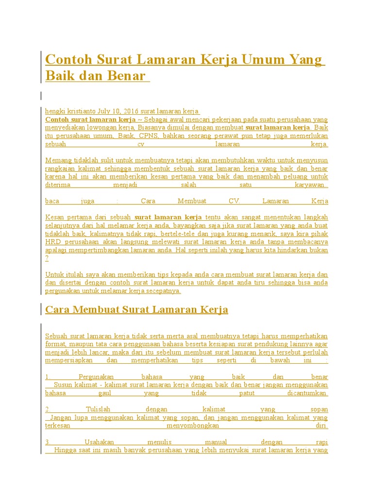 Contoh surat lamaran kerja yang baik dan benar.
